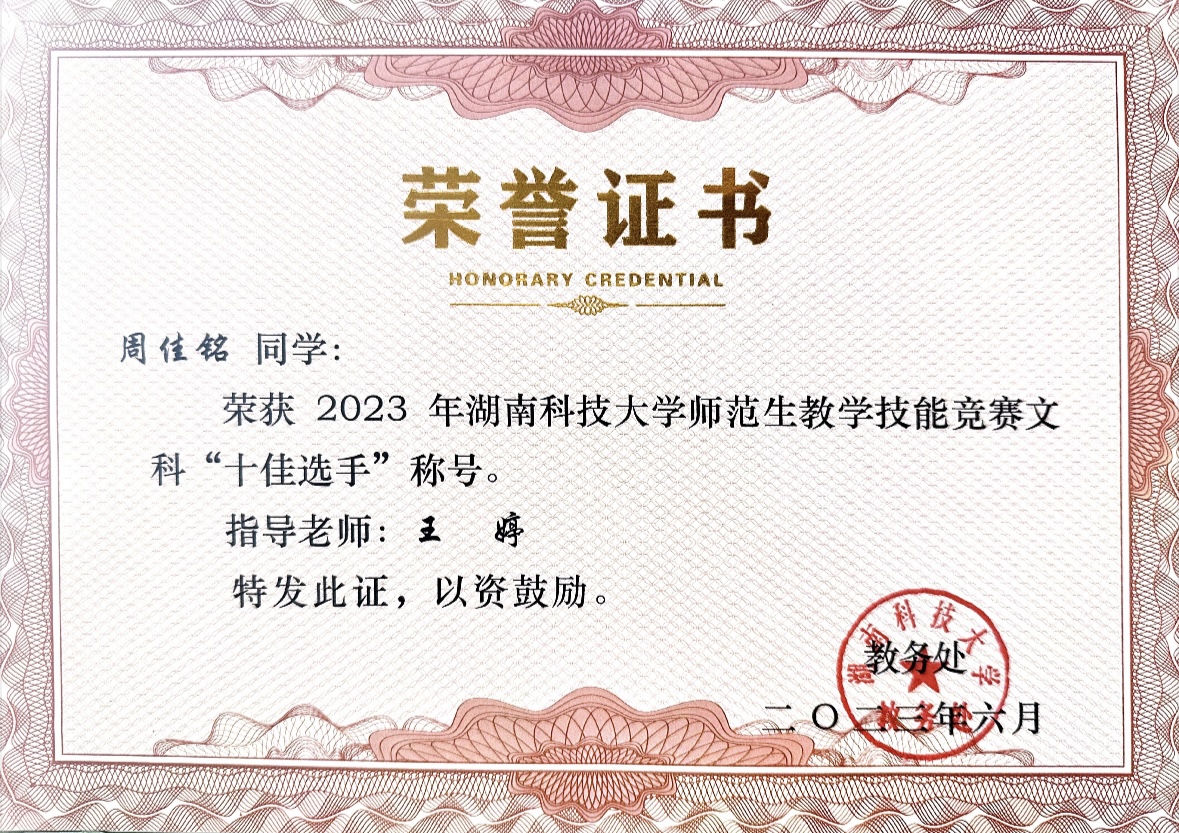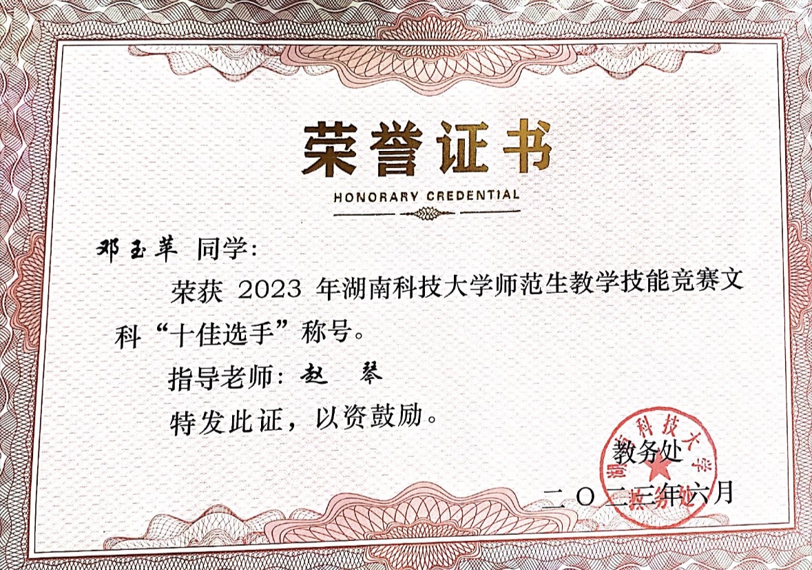6月10号学校举办了2023年师范生教学技能大赛。经过激烈的角逐,伦理影片 三名选手脱颖而出,分别获得文科组第六名、第九名和第十名。
