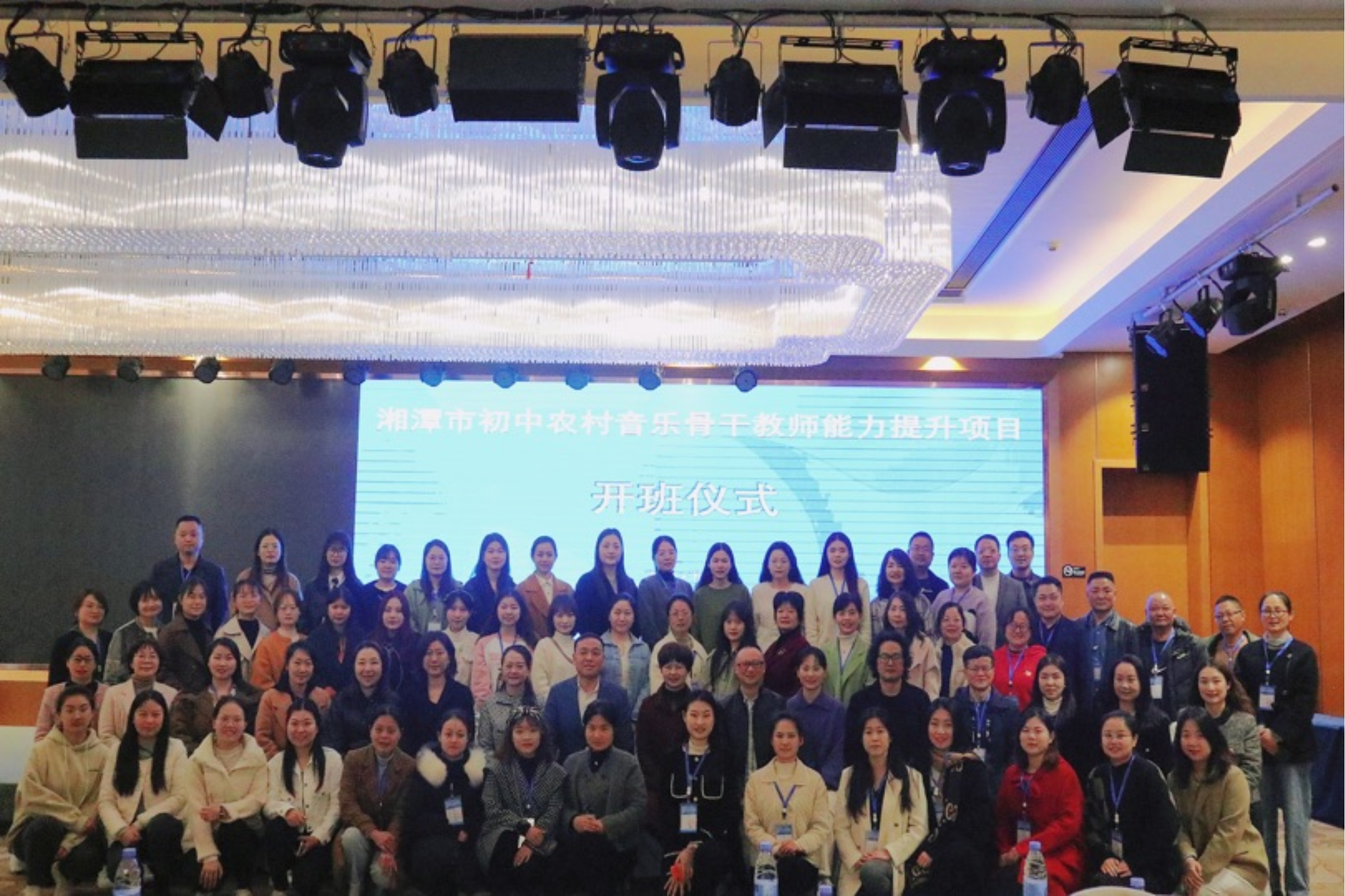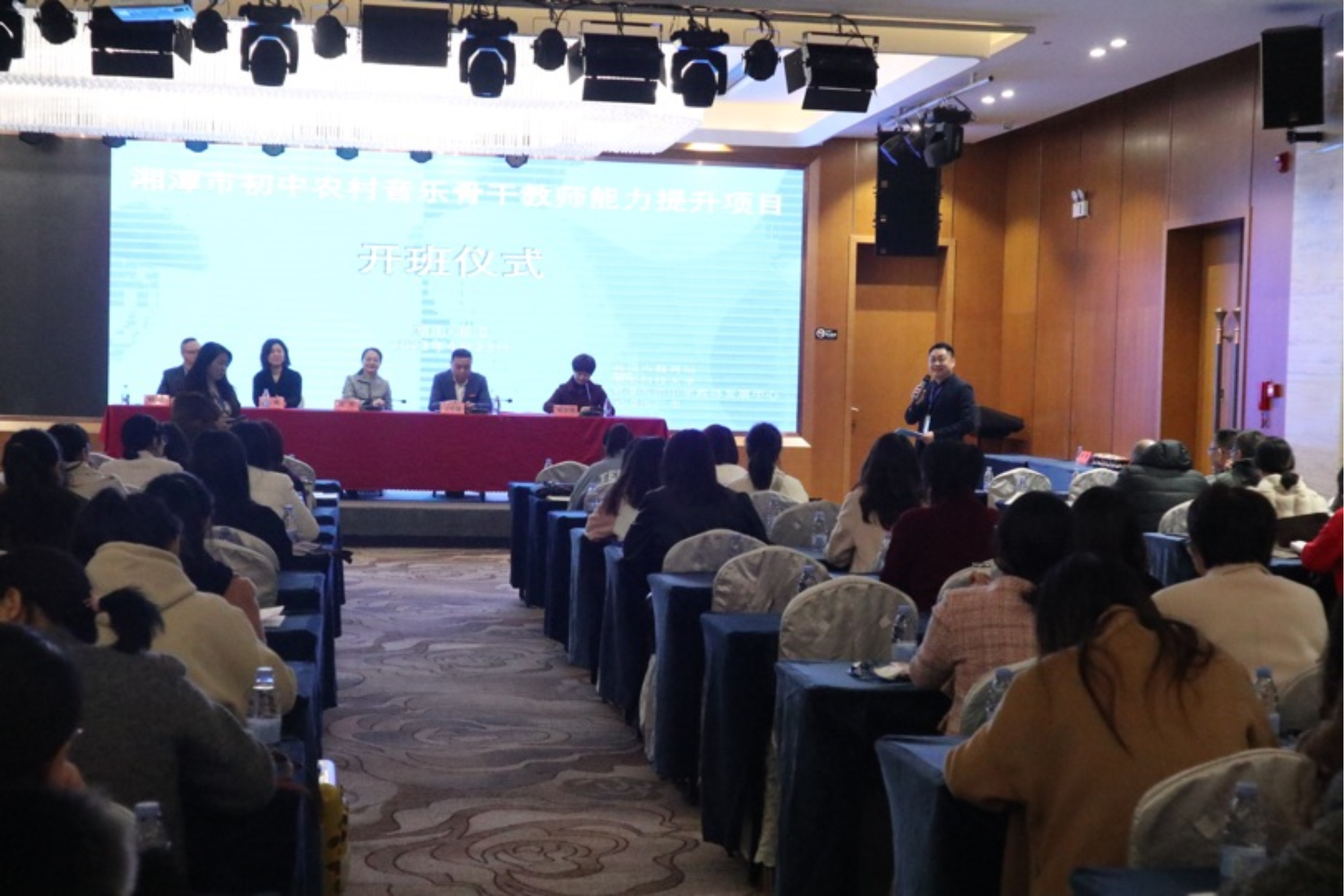 4月23日上午我校与湘潭市教育局,教师发展中心联合举行湘潭市初中农村音乐骨干教师能力提升项目开班仪式。湘潭市教育科学研究院院长成芳、湘潭市教育局教师科科长谭京湘,伦理影片 副院长王育霖教授,音乐系主任杨姝老师出席此次活动。