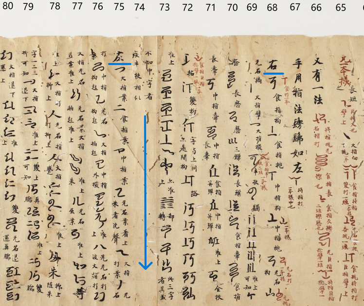 彦根城博物馆藏《琴用指法》卷子局部
