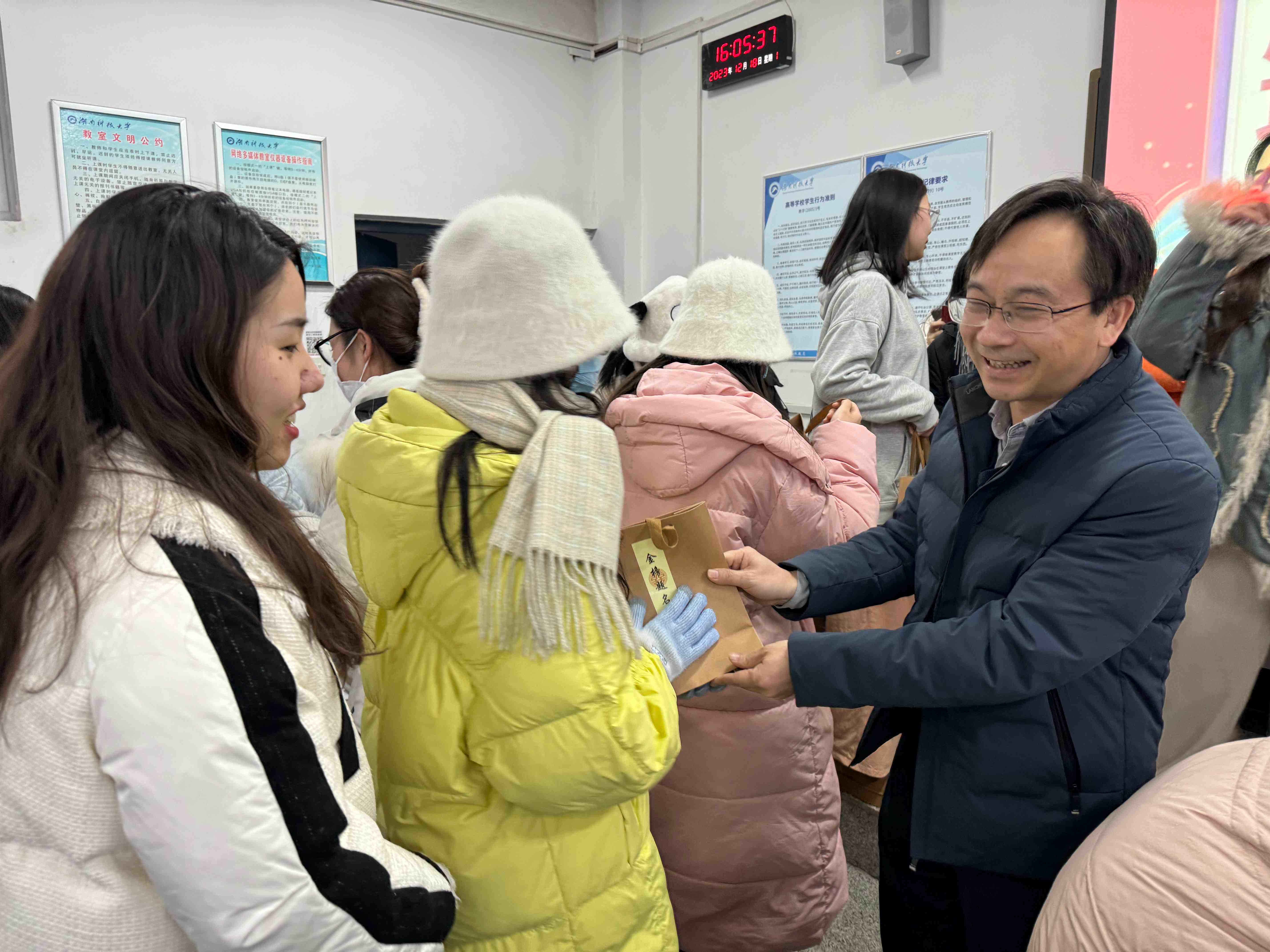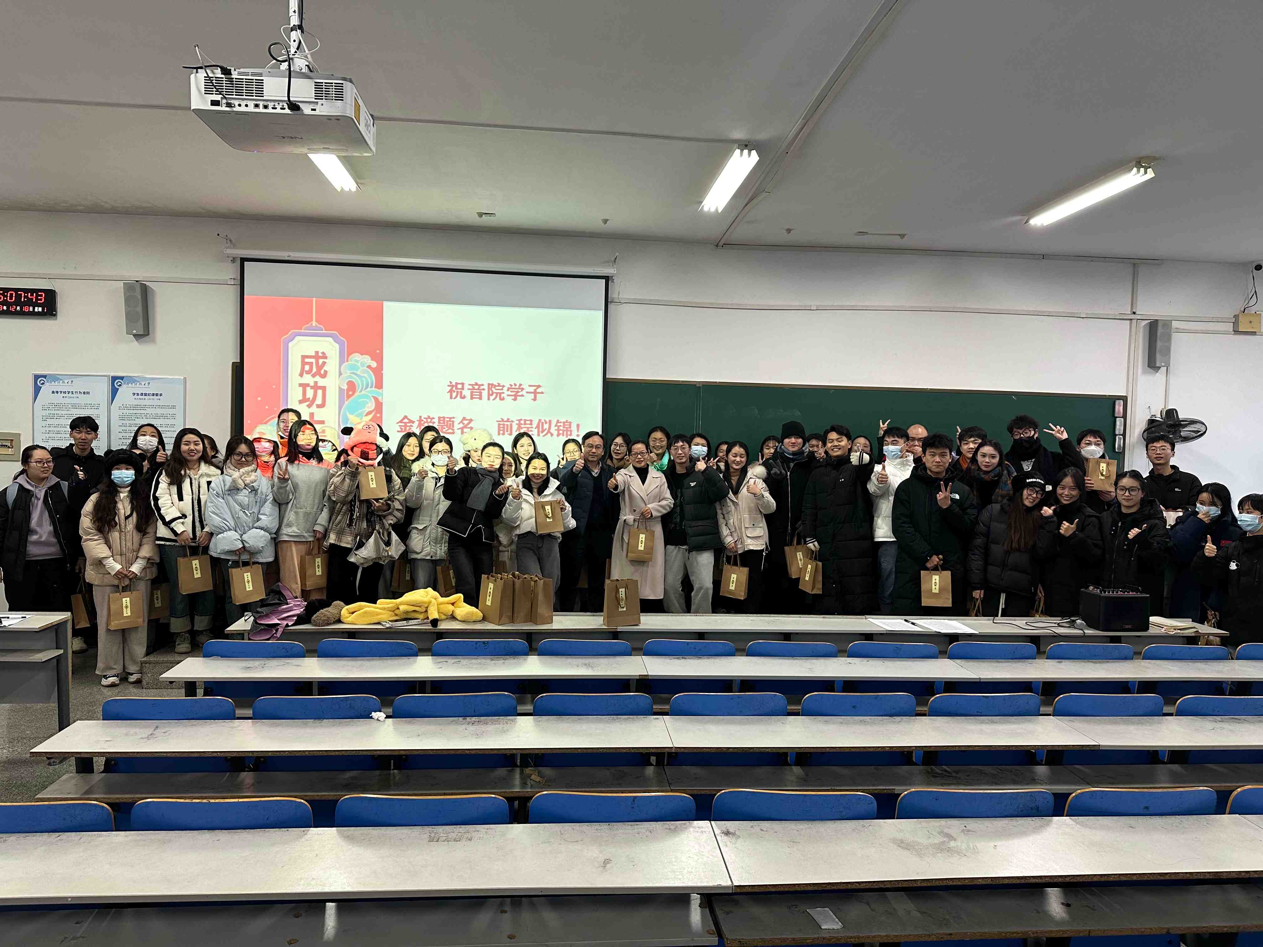 最后学院领导及老师们为考研学子送上贴有“金榜题名”的慰问福袋,并附上领导老师亲笔书写的祝福卡片。礼轻情意重,小小的福袋饱含学院满满的祝福。