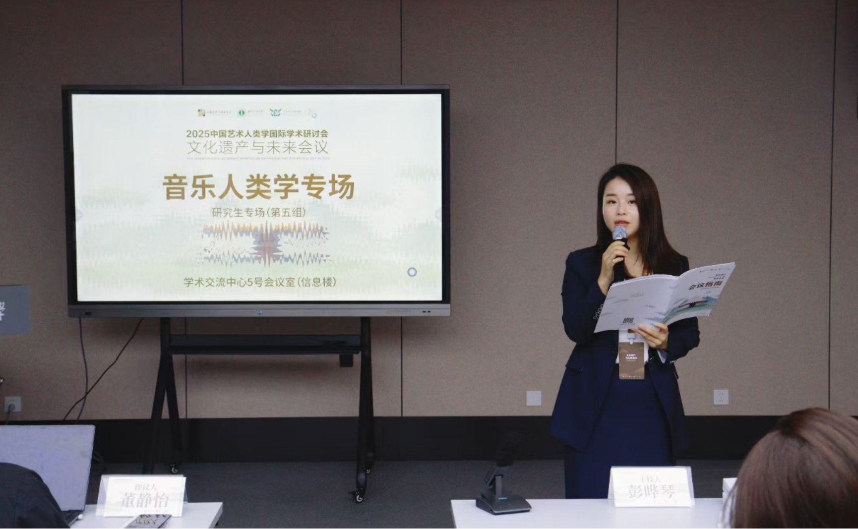 本场研究生专场共有6位研究生进行发言,他们围绕音乐人类学的多个热点问题展开了深入的探讨,涵盖了传统音乐文化的传承与创新、音乐与民族身份认同、跨文化音乐交流等多个方面。彭晔琴老师在每一位研究生发言结束后,都能迅速抓住其研究的亮点和核心观点,进行精准的点评和引导。