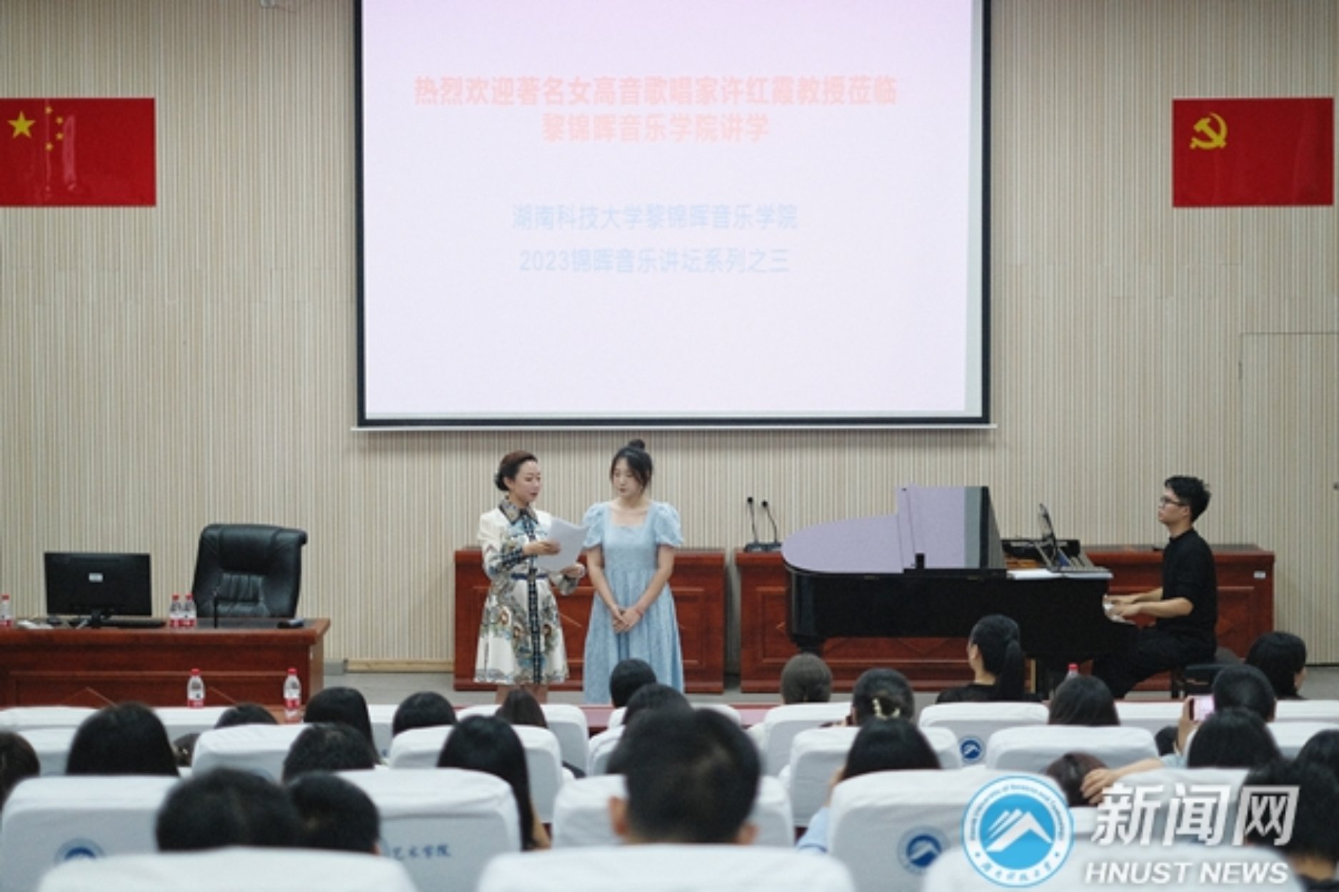 9月26日,浙江音乐学院声乐歌剧系教授、泰国西纳瓦国际大学博导、女高音歌唱家许红霞教授在齐白石艺术学院104举行了第三场讲座。许红霞亲自范唱,令在场的所有师生受益匪浅。此外,许红霞就学科建设、提升教学能力和专业能力等方面,与音乐系教师进行了深入交流。